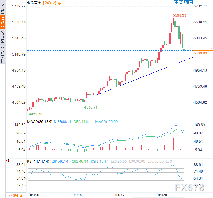 (现货黄金4小时图,来源:易汇通)北京时间14:12,现货黄金现报5196.41美元/盎司。