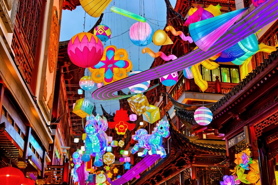 据介绍,本届灯会首次突破地理边界,延伸至BFC外滩金融中心(以下称“BFC”)、古城公园、方浜中路、福佑路及外滩,形成“六区一体”联动新格局,让中外游客领略“最上海”年味。