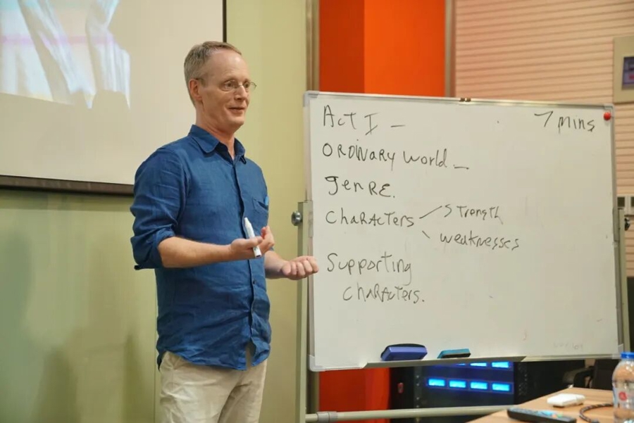 “在上海温哥华电影学院任教的十年里,我的手机里存着上千张白板的照片。没有风景,没有人像,只有白板。每一块斑驳反光里潦草的字迹,都是一个学生的故事……对我而言,在这里的岁月,是用白板、可擦马克笔和学生们的故事来丈量的。”这段摘自伯恩斯先生于学院十周年之际所写文章《白板人生》的文字,正是其教育理念的生动写照。他治学严谨而热忱,课堂深入浅出,始终以激发每一位学生的创造力为使命。在学院任教期间,他累计培养千余名中外毕业生,其学生作品在上海国际电影节、塔林黑夜电影节等海内外重要平台屡获佳绩,更入围奥斯卡金像奖、英国电影学院奖等国际奖项的评选。他真诚倾听每一个故事,并常说:“我教给学生时,学生也教会了我。我从他们身上学到的,或许更多。”正是这份谦逊与共情,让他透过课堂的窗口,真切感知并深爱上了一个丰富、立体、行进中的中国。
