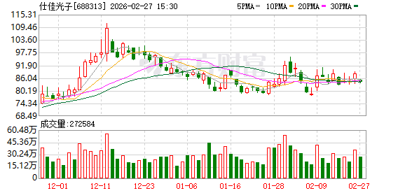 二级市集发达方面,截止本日(2月27日)收盘,仕佳光子股价报84.08元/股,总市值380亿元。