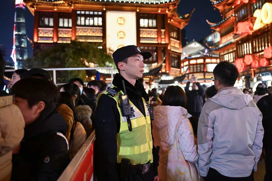 本年豫园灯会握续时期长,大师不雅灯关怀依旧激越,这对安保责任提议了更细巧化的条目。在豫园商城内的指导点,黄浦公本分局大保办正经东谈主先容,警方的督察半径不仅局限于“圈内”,更将客流处罚向外蔓延。在附进骨干谈和外围区域,增派警力指令交通、引导泊车,确保城市动脉流畅无阻。耀眼的警灯与高悬的花灯交相照映,在三街六市,执勤民警肃静重视着万家团圆的灯火,用整夜的信守,换一城的疲塌。