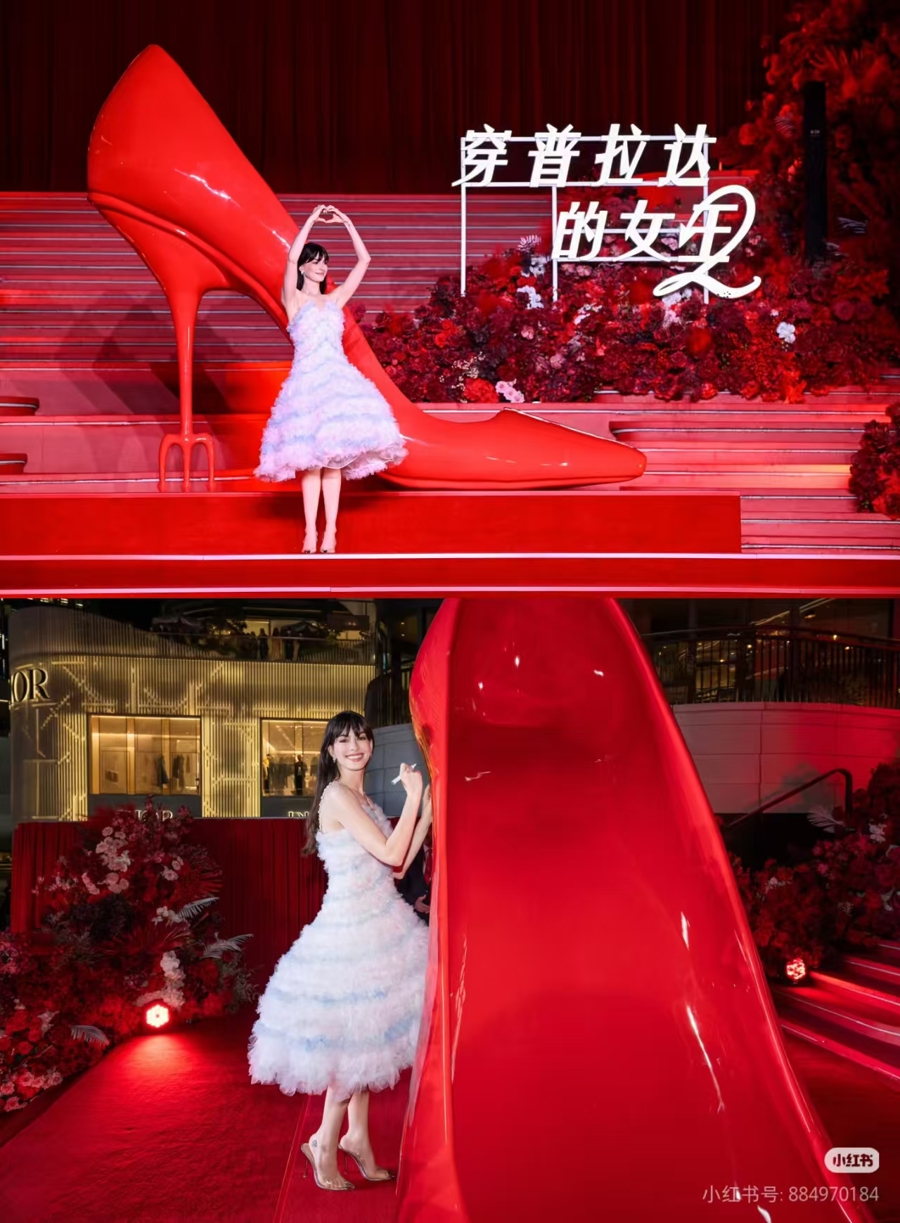 和传统的不雅影+映后款式不同,《穿普拉达的女王2》在前滩太古里举办了前锋红毯秀,强大红色高跟鞋装配立在中央,收复电影海报中经典视觉元素,舞台嘱咐颇为吸睛。“红毯现场邀请了好多明星,包括周也、谷爱凌等,两位主演安妮·海瑟薇、梅丽尔·斯特里普压轴登场,激发全场答应。就算莫得红毯票,也不错在边远围不雅。”来自点灯文化的叮叮挑升从北京赶来上海插足行为,看成《穿普拉达的女王》的至意不雅众,能看到两位主创在目前互动让她得意万分。