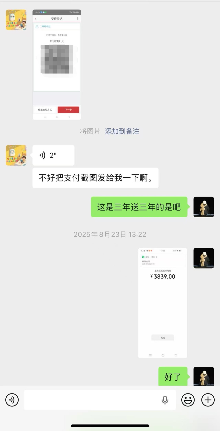 朱女士先容,从2022年起,家中就在使用长城宽带。客岁8月,因宽带工作到期,恰逢长城宽带又推出“满3年送3年”的优惠促销动作,她便支付3839元,锁定了一项长达6年的宽带套餐。“其时思着荟萃终年要用,此前宽带也没出过什么问题,就阴凉付款了。”