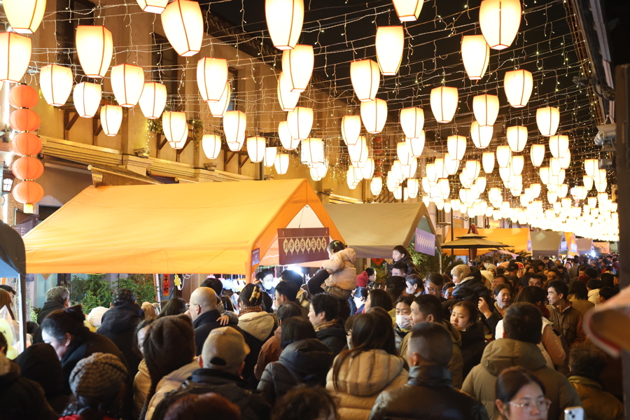 川沙古镇区域东谈主潮涌动,再现流彩川沙夜,坊映花灯红。