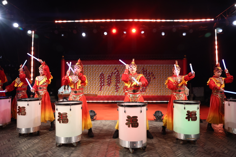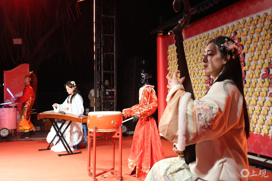 川沙古城墙公园内的暖场灯光秀当先点亮夜空,机器东谈主和饱读乐手合营的翻新打饱读节目饱读声铿锵、阵容如虹,将传统饱读乐与当代科技和会呈现。