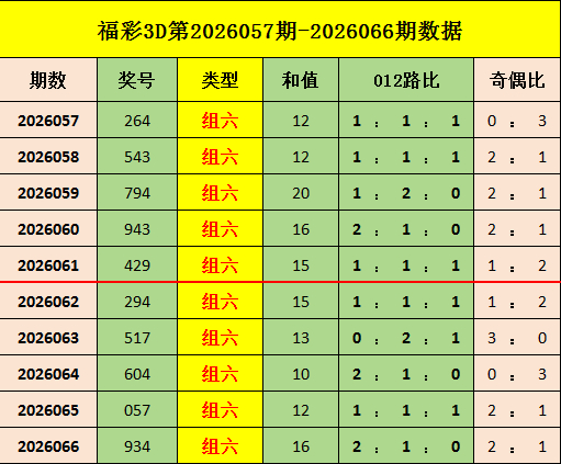 福彩3D上期开出奖号为934,奖号为组六方式,和值为16,012路比为2 : 1 : 0,奇偶比为2 : 1。