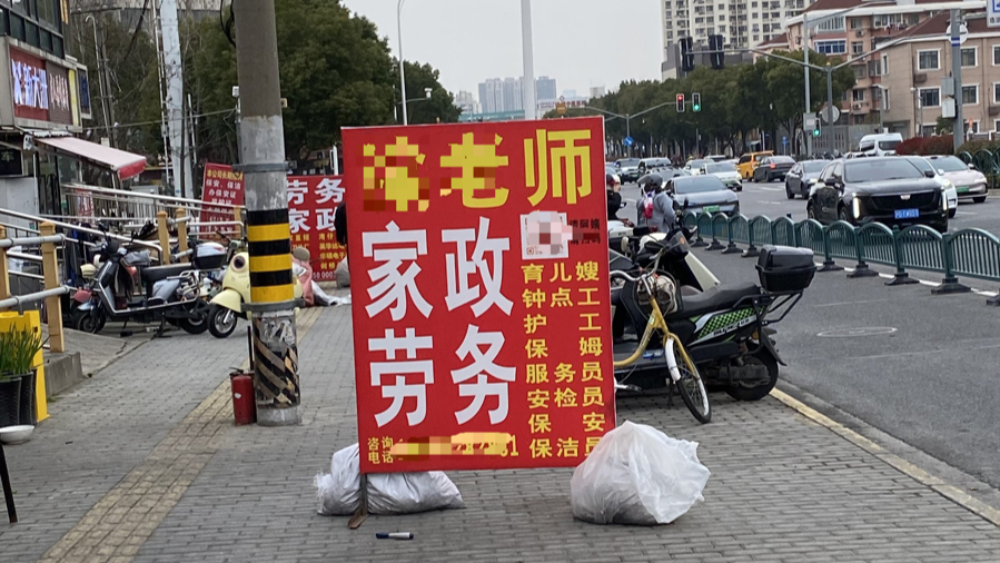 “眼下的盲说念倏得‘断’了,伸手一摸,竟是一块大铁牌,差点撞上去!”近日,视障东说念主士张老伯向“新民帮侬忙”反应,上南路近三林路西侧的几家劳务中介为吸收贸易,竟将告白牌径直“骑”在盲说念上,不仅侵占全球空间,更让视障东说念主士出行“找不着北”。