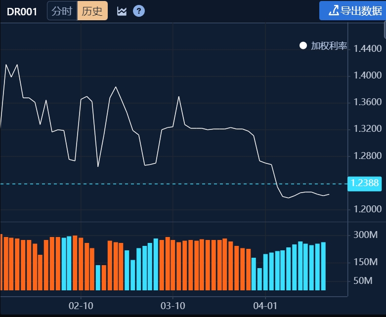 21世纪经济报谈记者留心到,4月17日发稿时,银行间入款类机构隔夜质押回购利率DR001来到了1.22%近邻的彰着低位;而资金利率“凹地”带动了机构加注债市的多头温和。