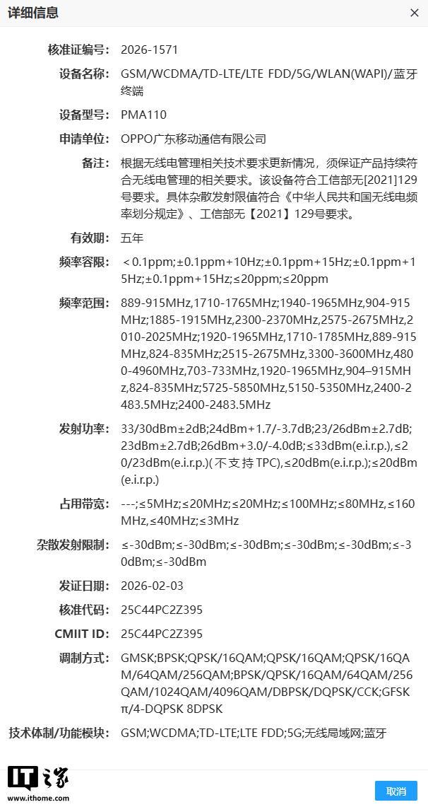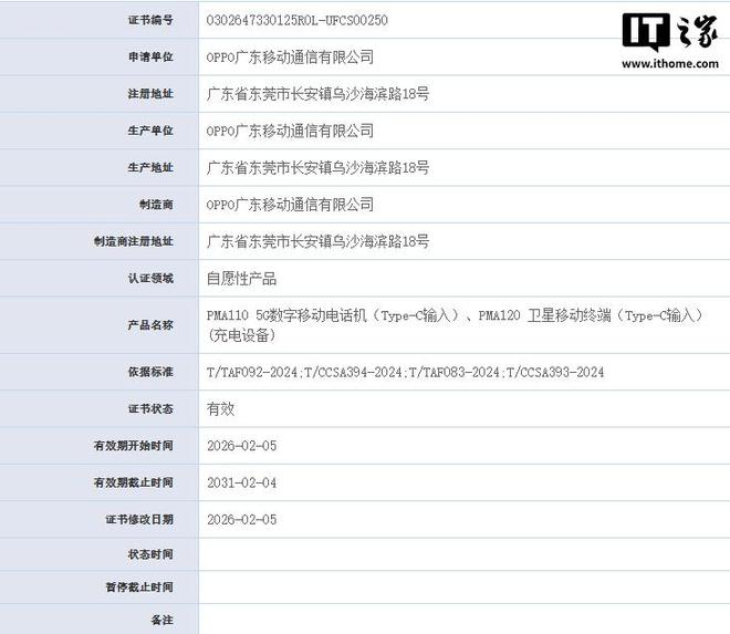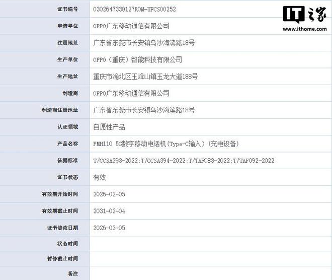 IT之家 2 月 6 日音尘,OPPO 有多款新机通过 UFCS 交融快充认证,充电功率未公布: