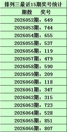 刘飞体彩成列三第2026067期号码参考: