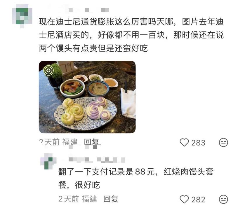 对比之下,客岁上海迪士尼推出的红烧肉馒头套餐中,两个米妮造型馒头订价88元,激励网友“通货彭胀”的辱弄。